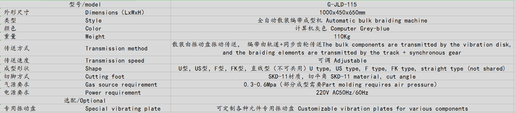 7.可成型U型(臥式),F型(立式)、直線型(三種形狀無法共用,訂購時需說明成型形狀),可自動分物料正負極,百分百分極性;