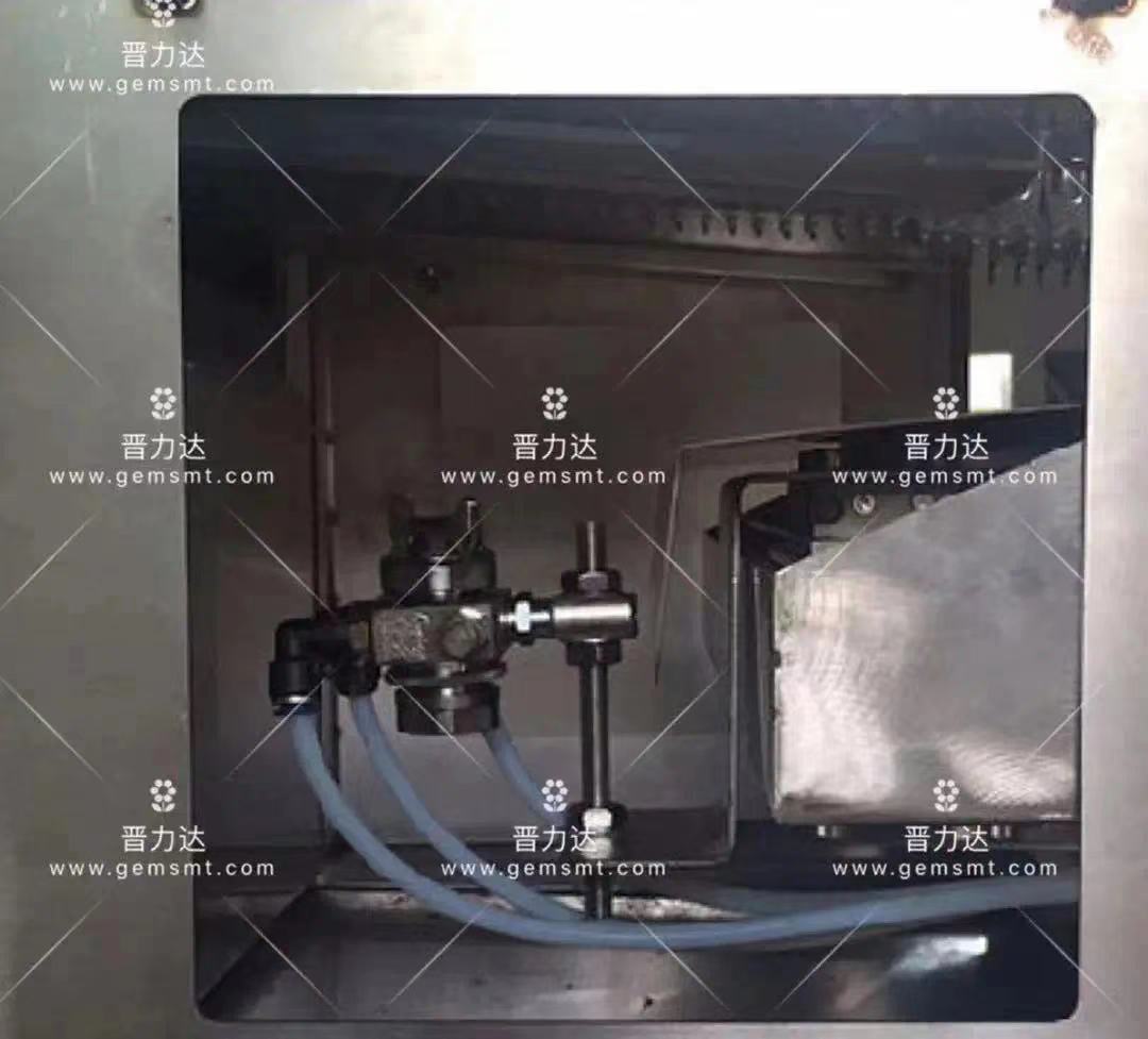波峰焊助焊劑直通噴嘴孔,由噴嘴孔流出,頂針頂住噴嘴孔來控制關、開狀態,噴頭底蓋加彈簧控制頂針的松緊即可以控制助焊劑量的大小,將調水管的氣壓調到 0.2KG,將調氣管的氣壓調到 0.02~0.05KG,即有氣同助焊劑一起噴出,噴出的霧狀是圓型的,如果想將霧狀調成橢圓形的,只需擰松右側面的螺釘即可,調整助焊劑量的大小時,將噴頭底蓋擰松或擰緊,或者調整調水管氣壓大小。