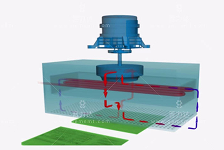 7、由于先進(jìn)的孔噴嘴幾何形狀,出色的熱傳遞以及加熱模塊中可監(jiān)控的可調(diào)超壓,保證均勻和無(wú)間隙的熱傳遞到電路板。整個(gè)過(guò)程可以保證惰性工藝氣氛焊接過(guò)程,因?yàn)槭欠忾]的系統(tǒng),沒(méi)有外部空氣進(jìn)入處理室。 熱流在系統(tǒng)內(nèi)通過(guò)循環(huán)發(fā)生,即過(guò)程預(yù)熱和峰值區(qū)域的氣體被提取,清洗并從側(cè)面重新插入過(guò)濾網(wǎng)。